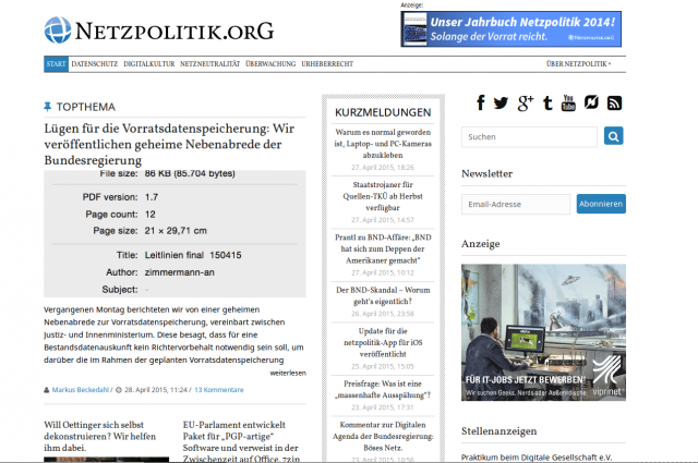 Blog für digitale Bürgerrechte netzpolitik.org
